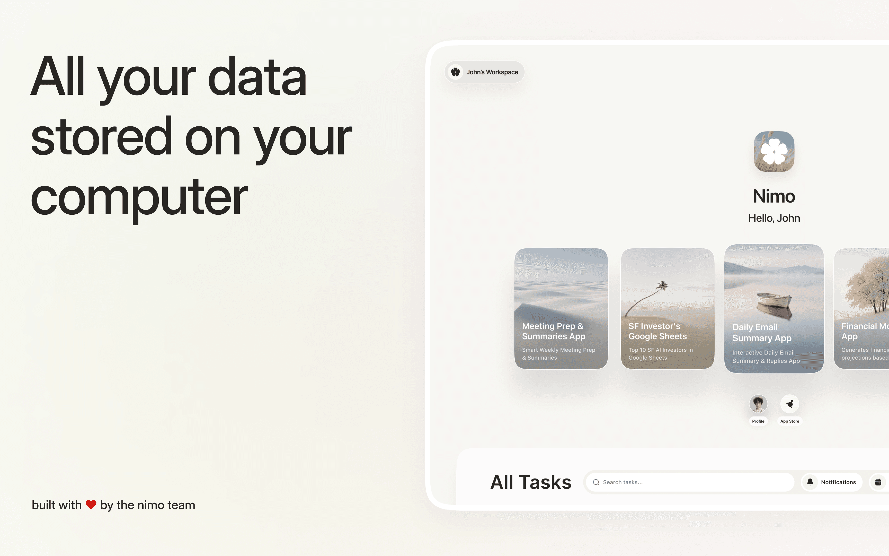 Our App Store features 100+ apps that you can connect to your canvas. Your data stays on your Mac & iCloud, never on our servers or with partners, making it a completely private and secure experience.